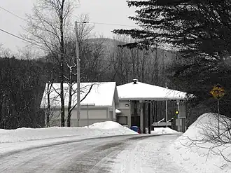 The Canadian station is located on the southeast side of Missisquoi Valley Road (Chemin de la Vallée Missisquoi), a short way north of the bridge. Canada replaced its border station in 1960.