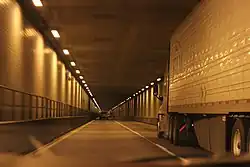 The East River Mountain Tunnel is a 5,412-foot (1,650 m) vehicular tunnel that carries Interstate 77 (I-77) and U.S. Route 52 (US 52) through East River Mountain between Bluefield, West Virginia, and Rocky Gap, Virginia.