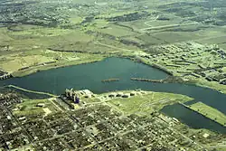 Town Lake in 1980, looking south with the Riverside neighborhood in the background