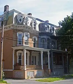 As Saratoga Springs began to develop into one of the country's most fashionable resorts in the late 19th century, it developed its upper and upper-middle class. These people, primarily the owners of stores and spas and those who owned the firms that designed and built them, wanted to live in houses that reflected their success. They gravitated to the neighborhoods east of upper Broadway and north of Union Avenue, where the wealthy summer residents had their homes. Their own homes were scaled-down versions of those homes, often by the same architects, including R. Newton Brezee, who himself lived on the East Side.[2]