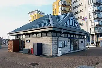 Since 1993, the all-weather lifeboat has been moored afloat in a new lifeboat station in the Sovereign Harbour development.[5] In 2012, Mersey-class lifeboat Royal Thames was replaced by a new All-weather lifeboat, 16-23 Diamond Jubilee (ON 1303), a 16 metres (52 ft) self-righting Tamar-class lifeboat.[6]