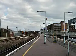 A goods station and yard were constructed to the north of the current station, on the site of the first station. It was accessed from the mainline. Also to the north was an extensive coal depot, and industrial sidings, including the Crumbles siding. The goods shed still stands today as the Enterprise Shopping Centre, and the former goods yard surrounding it has been converted into a station car park. The site of the former coal sidings that used to be situated northeast of the station is now occupied by a car dealership.