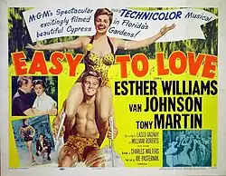 Easy to Love is a 1953 Technicolor musical film directed by Charles Walters with choreography by Busby Berkeley. It stars Esther Williams, Van Johnson and Tony Martin. It was Williams' final aquatic film set in the United States.