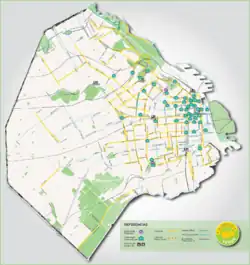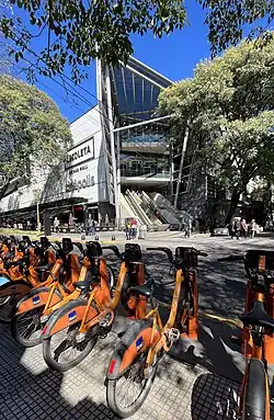 EcoBici is a station-based bicycle-sharing system in Buenos Aires, Argentina, which began operating in 2010. The service is free of charge to both residents of the city and tourists, and is available 24 hours a day. After one hour of use on weekdays, two hours during the weekend and on holidays, the bike has to be returned and the user has to wait fifteen minutes to get another one.[1] The system is still being expanded and, as of 2019, has 195 km (121 mi) of lanes completed.[2] Stations are automatic and require the use of a smartphone application or a smart card, not in joint with the Sube card system, acquired upon registering for the service. Usage according to the terms of use is controlled via a rating system which can lead to restricted to total exclusion from the system.[3]