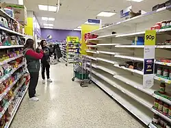 Some supermarkets and other shops responded by limiting the quantity of popular items that each customer could buy, while others had a limit across their entire range.[69][70] Sainsbury's introduced a dedicated shopping hour for elderly and disabled customers, as well as giving them priority for online deliveries.[71] Other supermarkets such as Iceland and Morrisons also introduced measures,[72] with Morrisons introducing a range of basic food boxes, to feed two adults for one week.[73][68] Sainsbury's further announced on 21 March that they would give healthcare workers allocated shopping hours on three mornings a week.[74]