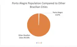 The population of Porto Alegre is 1,483,771.[7] As a percentage of the total population of Brazil (210, 147, 125[8]), the people of Porto Alegre make up approximately 0.67% of the population. (As shown in figure 1).