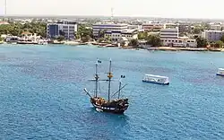 The boom in the Cayman Islands' international finance industry can also be at least partly attributed to the British overseas territory having no direct taxation. A popular legend attributes the tax-free status to the heroic acts of the inhabitants during a maritime tragedy in 1794, often referred to as "Wreck of the Ten Sails".[9] The wreck involved nine British merchant vessels and their naval escort, the frigate HMS Convert, that ran aground on the reefs off Grand Cayman. Due to the rescue efforts by the Caymanians using canoes, the loss of life was limited to eight.[10] However, records from the colonial era indicate that Cayman Islands, then a dependency of Jamaica, was not tax-exempt during the period that followed. In 1803, the inhabitants signed a petition addressed to the Jamaican governor asking him to grant them a tax exemption from the "Transient Tax on Wreck Goods".[11]
