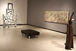 Since the 1920s, artists in English Canada had been heavily influenced by the landscape painting of the Group of Seven, the Canadian Group of Painters and the Eastern Group of Painters. In Quebec, John Goodwin Lyman founded The Contemporary Arts Society in 1939, promoting post-impressionist and fauvist art.[1] Paul-Émile Borduas and Jean-Paul Riopelle spearheaded the modernist collective known as Les Automatistes, which began having exhibitions as early as 1941. However, their artistic influence was not quickly felt in English Canada, or indeed much beyond Montreal.[2] The Painters Eleven (1953 - 1960) was founded in Toronto to promote their members' abstract works. Regina Five is the name given to five abstract painters, Kenneth Lochhead, Arthur McKay, Douglas Morton, Ted Godwin, and Ronald Bloore, who displayed their works in the 1961 National Gallery of Canada's exhibition "Five Painters from Regina". Though not an organized group per se, the name stuck with the 'members' and the artists would continue to show together.[1]