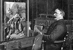 Eduard von Grützner in front of his painting Don Quixote (1904)