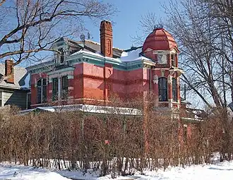 The Edward and Elizabeth Heimbach House and Carriage House is an 1890, high Victorian style, two-story, 2,556-square-foot (237.5 m2) brick house in Saint Paul, Minnesota, United States, in the West Side neighborhood. The house has an octagonal tower and dome and a detached carriage house.[1]
