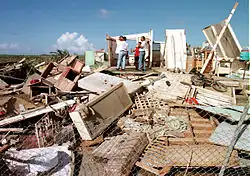The agricultural sector of Puerto Rico lost over 50% of its crops and 65% of its poultry.[1] Equipment, agriculture and manufacturing losses amounted to $212.9 million a day. Damages to houses were catastrophic, with 28,005 houses completely destroyed; an additional 72,000 were partially destroyed. On the nearby island of Culebra, 74 houses were completely destroyed with 89 suffering partial damage. Schools received an estimated $20–25 million in damage. The total damage to the Puerto Rican economy was estimated at $1.907 billion.[1]