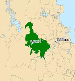 Moggill is an electoral district in the Legislative Assembly of Queensland in the state of Queensland, Australia. The electorate is held by Dr Christian Rowan, for the Liberal National Party of Queensland.