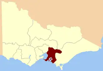 The Electoral district of South Bourke, Evelyn and Mornington was one of the sixteen electoral districts[1] of the original unicameral Victorian Legislative Council of 1851 to 1856. 37°56′S 145°12′E / 37.933°S 145.200°E