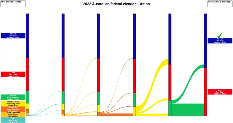 - ^ "2022 Federal Election: Aston, VIC". AEC Tally Room. Australian Electoral Commission. 17 June 2022. Retrieved 13 February 2023.