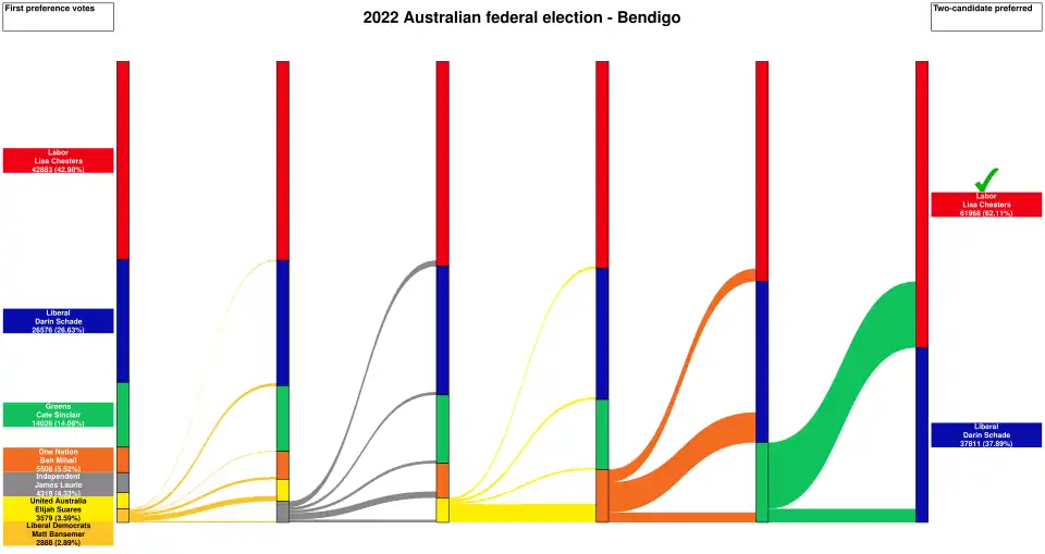 - ^ Bendigo, VIC, 2022 Tally Room, Australian Electoral Commission.