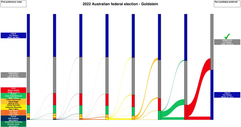 - ^ Goldstein, VIC, 2022 Tally Room, Australian Electoral Commission.