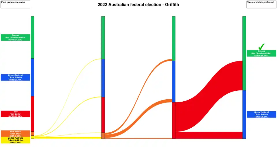 2. ^ Griffith, QLD, 2022 Tally Room, Australian Electoral Commission.