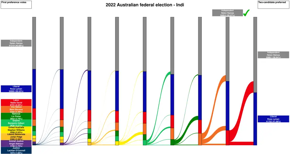 - ^ Indi, VIC, 2022 Tally Room, Australian Electoral Commission.