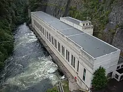 Reefton on the West Coast became the first electrified town in 1888 after the Reefton Power Station was commissioned, while the first sizeable power station—the Horahora Power Station—was built for the Waihi gold mines at Horahora on the Waikato River. This set a precedent that was to dominate New Zealand's electricity generation, with hydropower becoming and remaining the dominant source.[9] From 1912 to 1918, the Public Works Department issued licenses for many local power stations.[10] By 1920, there were 55 public supplies, with 45 megawatts of generating capacity between them.[11]