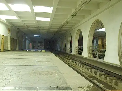From the middle of the station are two staircases leading to a large surface vestibule (the only underground station in Ukraine with such arrangement). Nevertheless, it does receive a lot of passenger traffic as a lot of bus and marshrutka routes terminate there.