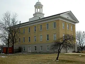 The first settlers arrived in Elgin, Illinois in April 1835. James Talcott Gifford built his cabin on what is now a triangular park between Fulton, Villa, and Geneva Streets. A dam was constructed two years later, and the first plat of Elgin was recorded in August 1842. Gifford marked a road from Elgin east to Meacham's Grove, and west to Belvidere. Roads from those towns connected to Chicago and Galena, respectively. This Galena-Chicago trail became an important early stagecoach line. The first Elgin school, on the northeast corner of DuPage and Chapel Streets, began classes in 1847. Gifford built a second home on Prairie Street in 1850. This cobblestone house resembles houses in his home state of New York and resembles the Second Empire style. It is independently listed on the NRHP.[2]