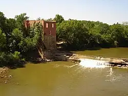 Two early residents were the Donnell brothers, William and Thomas, who established a grist mill on the Brazos River on the west side of town. The bed of the clear fork is sandstone in this area and made for a sturdy foundation on which to build a mill. The first mill was destroyed and then rebuilt in 1879 with help from a U.S. Government Engineer. The mill was destroyed by fire in 1927.[7] The remains of the mill and dam continue to be a popular stop for photographers and those looking for a glimpse of the past.[8]
