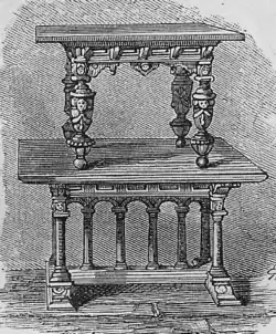 - ^ a b c d e f g h "Elizabethan and later English furniture". Harper's New Monthly Magazine. 56 (331): 18–33. December 1877. Retrieved 14 November 2018.