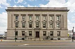 The Elmira Civic Historic District is the area of downtown Elmira, New York where the governmental center developed in the town's early history. It includes the Chemung County Courthouse Complex, John Hazlett Office Building and the Arnot Art Museum/Icehouse, all on Lake Street. Among the contributing buildings on Church Street are the Richardson Romanesque style Armory Building, the Beaux Arts-style City Hall, designed by Pierce & Bickford, and the U. S. Post Office. Other buildings are on nearby Baldwin Street, Market Street and Carroll Street. The district was added to the National Register of Historic Places in 1980;[3] four decades later its boundaries were revised.[2]