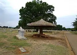 In the late 1930s, Mexican sculptor Dionicio Rodriguez created a number of large concrete sculptures for the cemetery, including a palm tree, a bridge, and a fallen log 'carved' into a bench.