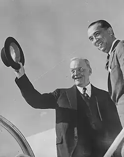 U.S. Secretary of State John Foster Dulles boarding for Brasília with Juscelino Kubitschek