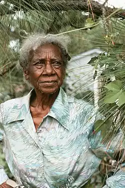 Emma Dupree's parents, Pennia and Noah Williams, were formerly enslaved people. They had eighteen children, with the seventh child being Emma Dupree.[1] Born July 4, 1897, Emma Williams Dupree grew up on the Tar River and was known as the "woods gal" for her penchant for roaming the woods for herbs, and she was known collectively in her community as "that little medicine thing." Emma told an interviewer in 1979 that her mother remembered being "on the porch of the old Wooten's farm home when freedom came. She was 16 when Mr. and Mrs. Wooten walked out on that porch and told her she was 'as free as they were, but they loved her just the same.'"