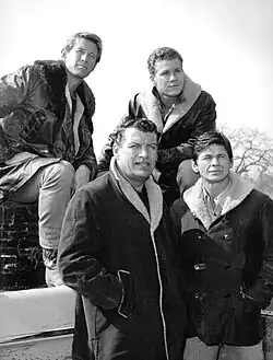 ![]() Male cast members clockwise from back: Warren Vanders, Ryan O'Neal, Charles Bronson and Richard Egan, 1963 | |