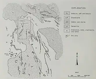 7. ^ a b c d Johnston, W.D., 1940, The Gold Quartz Veins of Grass Valley, California, USGS Professional Paper 194, Washington:US Government Printing Office