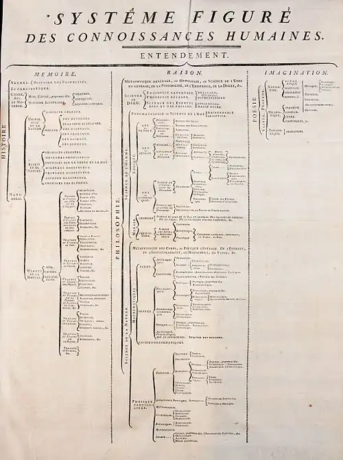 Fig. 3: "Figurative system of human knowledge", the structure that the Encyclopédie organized knowledge into. It had three main branches: memory, reason, and imagination.