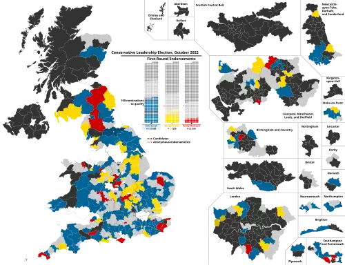 - ^ Initially endorsed Jeremy Hunt, then switched to Sunak after Hunt ruled himself out of the leadership contest.