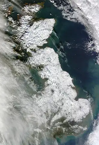The area of land in England and Wales is 151,174 km2 (58,368 mi2), while the United Kingdom is 243,610 km2. By 2013, 82 per cent was formally registered at HM Land Registry.[1] In 2010, over a third of the UK was owned by 1,200 families descended from aristocracy, and 15,354 km2 was owned by the top three land owners, the Forestry Commission, National Trust and Defence Estates.[2] The Crown Estate held around 1,448 km2.