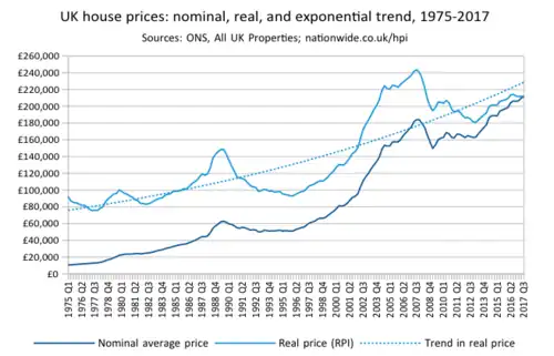 Since abolition of fair rent regulation by the Housing Act 1980, UK house prices periodically surged, taking an unaffordably high share of people's income. Real estate investment trusts, which get tax breaks for buying up residential property,[158] fuel the surge.