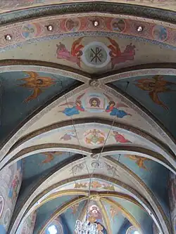 In 1893, the unused property was purchased by the Romanian Greek-Catholic Church. Some parts of the monastery were restored in 1909, at which point the frescoes were discovered. The 1760 organ was probably removed around the same period at the beginning of 20th century. The western portico acquired its current Gothic Revival appearance in the interwar period. In 1948, when the new communist regime banned the Greek-Catholic Church, the building was transferred to the Orthodox Church. Subsequently, the Baroque altar was replaced by an iconostasis. The neo-Byzantine murals date to 1978–1980.[1]
