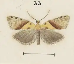 4. ^ a b c d Edward Meyrick (May 1883). "Descriptions of New Zealand Microlepidoptera. I and II. Crambidae and Tortricina". Transactions and Proceedings of the New Zealand Institute. 15: 43. ISSN 1176-6158. Wikidata Q111013914.Public Domain This article incorporates text from this source, which is in the public domain.