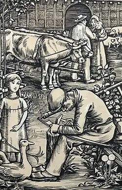In 1938, he was appointed head of the woodcutting class at the State Academy of Fine Arts in Stuttgart, succeeding Gottfried Graf, whose works had been deemed "Degenerate".[2] From then until 1944, he was represented at all the major art exhibitions, including the Große Deutsche Kunstausstellung, which featured Nazi-approved art. In 1943, he was officially welcomed to an exhibit in Kraków by the head of the General Government, Hans Frank, who came to be known as the "Polish Butcher".[1]