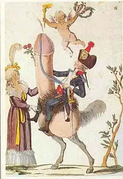 Erotica has been a feature of comics almost since the medium was developed. Marie Antoinette, Louis XVI, and other aristocratic subjects were caricatured in sexually explicit pamphlets such as The Royal Dildo and The Royal Orgy.[1]