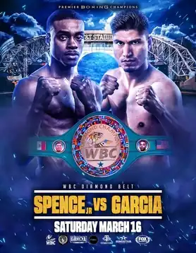 In October 2018, it was reported that negotiations between Spence and Garcia were progressing, with the fight likely to take place in February 2019 on Showtime PPV.[5] On October 30, Garcia vacated his IBF lightweight title and the purse bid for the potential Richard Commey fight was cancelled.[6] On November 13, PBC made an official announcement that the fight between Spence and Garcia would take place at the AT&T Stadium in Arlington, Texas on March 16, 2019, to be broadcast by FOX PPV.[7][8][9][10] This would be the first PPV headliner for both Spence and Garcia. Spence was a 1/4 favourite.[11]