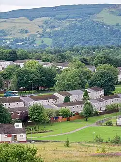 Erskine (/ˈɜːrskɪn/, Scots: Erskin, Scottish Gaelic: Arasgain) is a town in the council area of Renfrewshire, and historic county of the same name, situated in the West Central Lowlands of Scotland. It lies on the southern bank of the River Clyde, providing the lowest crossing to the north bank of the river at the Erskine Bridge, connecting the town to Old Kilpatrick in West Dunbartonshire. Erskine is a commuter town at the western extent of the Greater Glasgow conurbation, bordering Bishopton to the west and Renfrew, Inchinnan, Paisley and Glasgow Airport to the south. Originally a small village settlement, the town has expanded since the 1960s as the site of development as an overspill town, boosting the population to over 15,000. In 2014, it was rated one of the most attractive postcode areas to live in Scotland.[3][4]