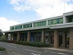 The town's Bridgewater complex provides a range of tertiary sector businesses, chiefly retail and leisure facilities. These include supermarkets, a tanning salon, a dental surgery, a bakery, a butcher, a fish & chip shop, takeouts, a pub with dining area, a Chinese restaurant, an optician, a chemist, a doctors surgery, hardware store, a hair salon, an estate agency, a dry-cleaners and key cutting service, a swimming pool,[8] a funeral directors, a bank[9] and a public library.[10]There are also smaller retail areas in the Bargarran, Mains Drive and Park Glade areas, where there are a few shops and restaurants as well as a community centre.[11]