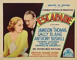 Escapade is a 1932 American pre-Code crime film directed by Richard Thorpe and starring Jameson Thomas, Sally Blane and Anthony Bushell.[1] It is also known by the alternative title of Dangerous Ground.
