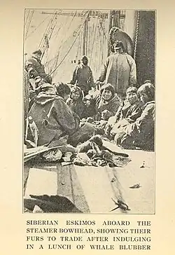 The Yupik are indigenous or aboriginal peoples who live along the coast of western Alaska, especially on the Yukon-Kuskokwim delta and along the Kuskokwim River (Central Alaskan Yup'ik); in southern Alaska (the Alutiiq); and along the eastern coast of Chukotka in the Russian Far East and St. Lawrence Island in western Alaska (the Siberian Yupik).[94] The Yupik economy has traditionally been strongly dominated by the harvest of marine mammals, especially seals, walrus, and whales.[95]