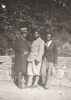 It is virtually impossible to find out the exact number of Ethiopian POWs who were imprisoned at different camps. The Asinara prison camp is an exception, due to its location in Europe and due to the personalities of the incarcerated individuals, the identities of many of the POWs and their approximate number became available through the years from people who kept records of their experiences in captivity.[2] According to the book "Etsub Dinq" written in Amharic by Balemberas Mahateme Selassie Wolde Meskel who was one of the prisoners at Asinara, the total number of prisoners was well over 400. He came up with names of close to 279 notables he remembered. Ras Imru Haile Selassie spent a few months at Asinara and later transferred to another detention camp where Ras Seyoum Mengesha was kept before the former's repatriation by the orders of Amedeo, 3rd Duke of Aosta, the Viceroy and Governor General of Italian East Africa. Ambassador Imru Zelleke was never incarcerated outside of East Africa. In the picture below, LtoR unidentified Ethiopian, Lij Seifu Mikael and Dejazmatch Girmachew TekleHawariat at Asinara Island.