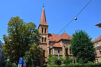 The Evangelical Church in Zagreb (Croatian: Evangelička crkva u Zagrebu; German: Evangelische Kirche in Zagreb; Hungarian: Evangélikus Egyház Zágrábban; Slovak: Evanjelický kostol v Záhrebe) is an Evangelical Lutheran Church located in centre of Zagreb (Donji Grad, close to the Republic of Croatia Square), Croatia. The church was originally built in period from 1882 until 1884.[1] The building is a free-standing single-nave neo-Gothic church.[2]