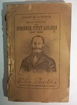 After escaping from the Pied-du-Courant Prison by allegedly feigning madness, Poutré published a pamphlet giving an account of his experiences, under the title Échappé de la potence (later translated in English as Escaped from the gallows). The work earned him considerable fame, his story being embodied in Louis-Honoré Fréchette's historical play also entitled Félix Poutré (1892).