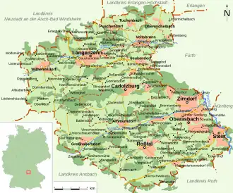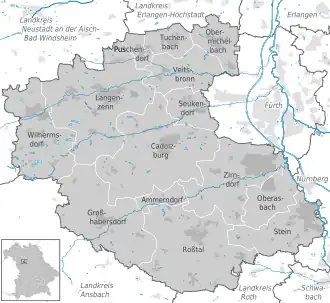 Fürth (district)BavariaAnsbach (district)Roth (district)SchwabachErlangenNeustadt (Aisch)-Bad WindsheimErlangen-HöchstadtFürthNurembergObermichelbachTuchenbachPuschendorfVeitsbronnSeukendorfWilhermsdorfLangenzennCadolzburgGroßhabersdorfAmmerndorfRoßtalZirndorfOberasbachStein